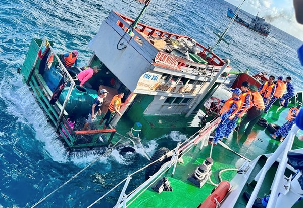 VOVVN - VOV.VN - Bộ Tư lệnh Vùng cảnh sát biển 3 vừa cứu thành công 6 người, trong đó có 1 trẻ em 3 tuổi trên con tàu bị chìm ở khu vực biển Côn Đảo.
