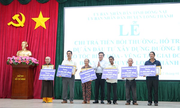 VOVVN - VOV.VN - Sáng nay (12/1), UBND huyện Long Thành phối hợp với Ban Quản lý dự án bồi thường, giải phóng mặt bằng và hỗ trợ tái định cư tỉnh Đồng Nai tổ chức chi...