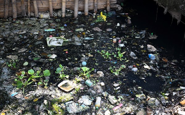 VOVVN - VOV.VN - Khoảng 10km sông Tô Lịch, đoạn chảy qua xã Vĩnh Quỳnh, huyện Thanh Trì (Hà Nội) bị ô nhiễm nặng, nước ở khúc sông tắc nghẽn, đen ngòm, nổi bọt bẩn, gây ô...