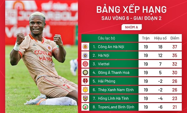 VOVVN - VOV.VN - Bảng xếp hạng V-League 2023 mới nhất, CLB CAHN rộng cửa vô địch sau khi thắng 3-0 trước Viettel FC ở vòng áp chót.