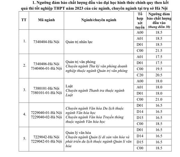 VOVVN - VOV.VN - Học viện Hành chính Quốc gia vừa công bố điểm sàn xét tuyển đại học năm 2023, theo đó mức điểm giao động từ 15-21,5 điểm.