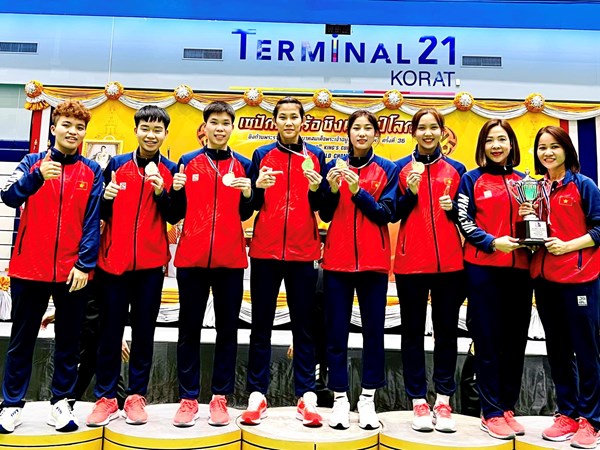 VOVVN - VOV.VN - ĐT cầu mây nữ Việt Nam giành HCV nội dung 4 người tại giải vô địch thế giới 2023 sau khi vượt qua đối thủ Indonesia trong trận chung kết.