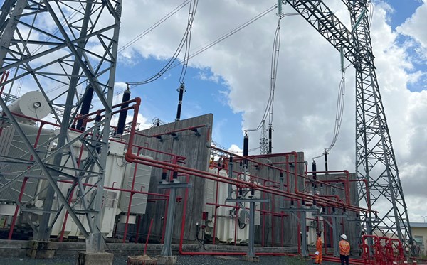 VOVVN - VOV.VN - Sáng 20/8, Ban Quản lý dự án các công trình điện miền Nam và các đơn vị liên quan đã đóng điện thành công máy biến áp liên lạc 500/220kV tại sân phân...