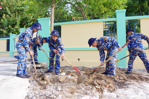 VOVVN - VOV.VN - Cán bộ chiến sĩ Lữ đoàn 146 đã hỗ trợ trường mầm non Trường Sa tại phường Cam Nghĩa, TP. Cam Ranh, tỉnh Khánh Hòa củng cố cảnh quan môi trường để chuẩn bị năm học...