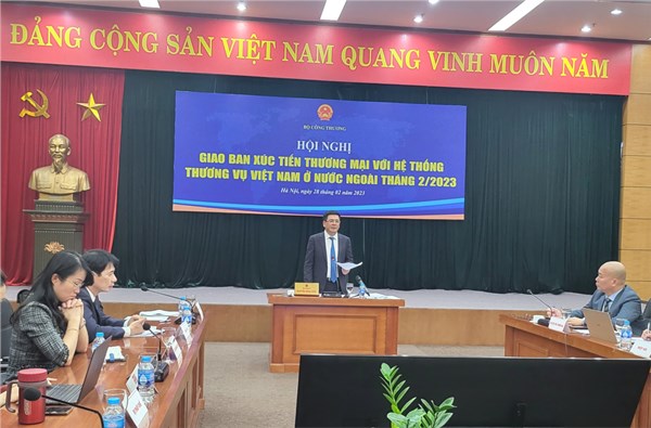 VOV1 - Chủ trị Hội nghị giao ban xúc tiến thương mại với hệ thống Thương vụ Việt Nam ở nước ngoài tháng 2/2023, Bộ trưởng Bộ Công Thương Nguyễn Hồng Diên dẫn chứng số liệu...