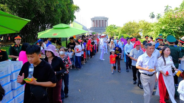 VOVVN - VOV.VN - Các tổ chức quần chúng Bộ Tư lệnh Lăng Chủ tịch Hồ Chí Minh và các đoàn viên thanh niên phường Ba Đình tổ chức phát 35.000 suất quà (bánh, nước và sữa)...