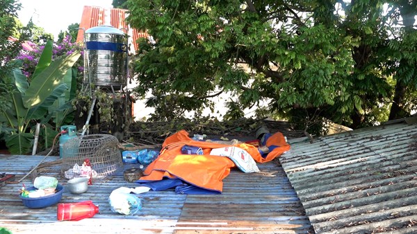 VOVVN - VOV.VN - Hơn 4 ngày bám trụ trên mái tôn khu chuồng lợn , chiều 10/10 ông Dương Văn Thiêm mới xuống được dưới đất, chạy sang nhà bà con để xem người vợ bị...