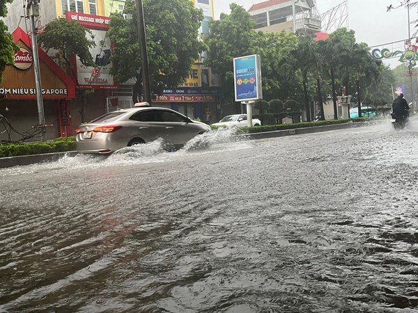 VOVVN - VOV.VN - Do ảnh hưởng của hoàn lưu bão số 5, mưa lớn kéo dài kèm theo gió mạnh đã quật đổ nhiều gốc cây, đường biến thành sông tại các tuyến phố trung tâm...