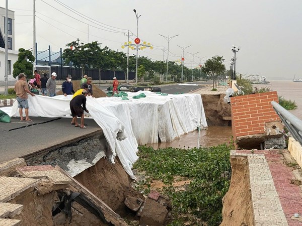 VOVVN - VOV.VN - Trước diễn biến sạt lở, sụp lún bờ sông Tiền khu vực bờ kè chống sạt lở tại xã Thường Phước, Ủy ban nhân dân tỉnh Đồng Tháp có văn bản chỉ đạo...