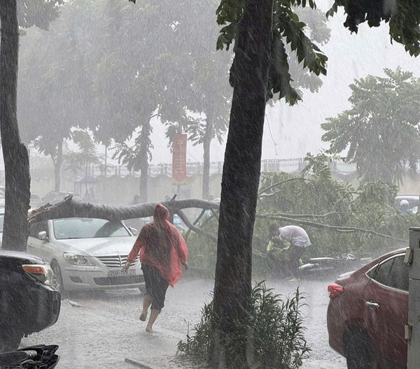VOVVN - VOV.VN - Trưa nay (14/8), tại một số khu vực của TP Hà Nội bất ngờ có mưa to, nhiều nơi bị ngập sâu, nhiều cây xanh bị đổ. Mưa đúng lúc giờ nghỉ trưa...