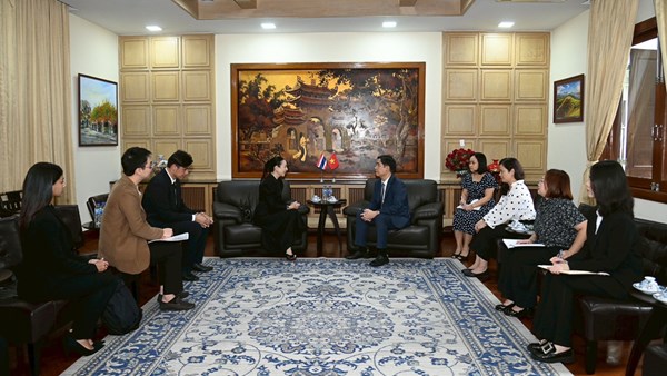 VOVVN - VOV.VN - Chiều 30/10, Đại sứ Việt Nam tại Thái Lan Phạm Việt Hùng đã tiếp bà Nualphan Lamsam (Madame Pang), Chủ tịch Liên đoàn Bóng đá Thái Lan (FAT).