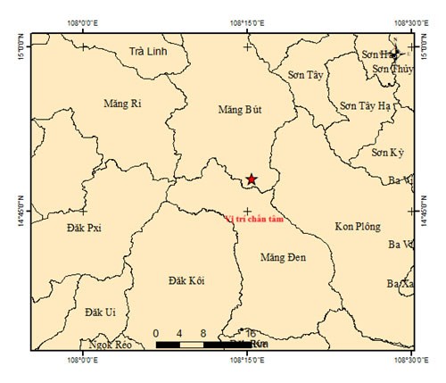 VOVVN - VOV.VN - Một trận động đất có độ lớn 3.3 vừa xảy ra tại xã Măng Bút, tỉnh Quảng Ngãi. Trận động đất nằm ở độ sâu khoảng 8,1 km, thuộc cấp độ rủi ro...