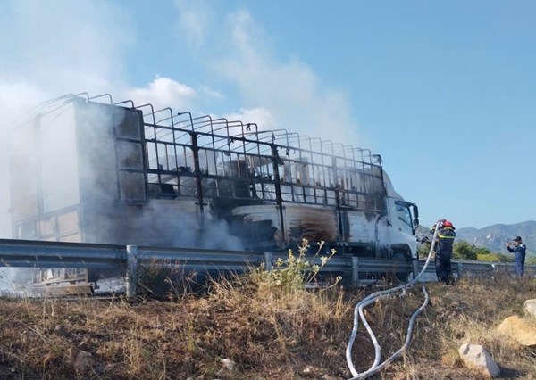 VOVVN - VOV.VN - Chiều 28/3, một xe ô tô tải chở máy móc nông nghiệp bất ngờ bốc cháy khi đang lưu thông trên cao tốc Cam Lâm – Vĩnh Hảo, đoạn qua xã Thuận Bắc,...