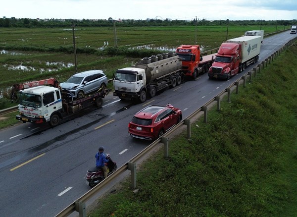 VOVVN - VOV.VN - 5 xe ô tô va chạm liên hoàn trên đường tránh thành phố Đồng Hới, tỉnh Quảng Bình (cũ) nay là tỉnh Quảng Trị (mới). Vụ tai nạn không gây thiệt hại về...