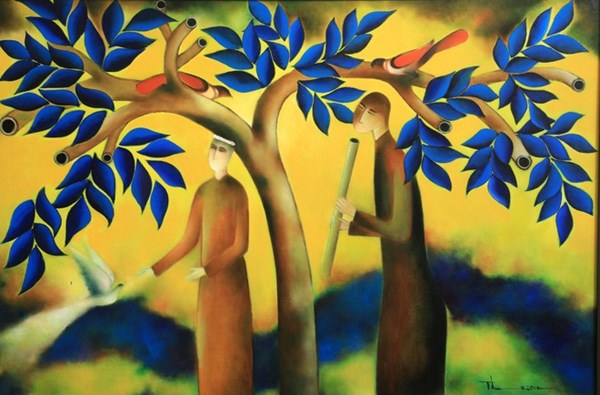 VOV6 - Triển lãm tranh “Người thổi sáo” của nhà thơ Nguyễn Quang Thiều (Chủ tịch Hội Nhà văn Việt Nam) đang diễn ra tại Trường Đại học Mỹ Thuật Việt Nam (42 Yết Kiêu, Hà Nội)...