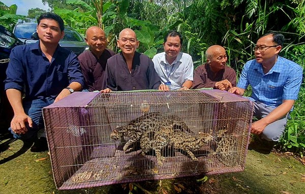 VOVVN - VOV.VN - 4 cá thể mèo rừng quý hiếm vừa được Vườn quốc gia U Minh Hạ (Cà Mau) thả về môi trường tự nhiên.