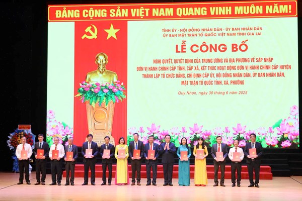 VOVVN - VOV.VN - Ngày 30/6, Tỉnh ủy, HĐND, UBND, Uỷ ban MTTQ tỉnh Gia Lai (mới) tổ chức Lễ Công bố Nghị quyết, Quyết định của Trung ương và địa phương về sáp nhập đơn vị...