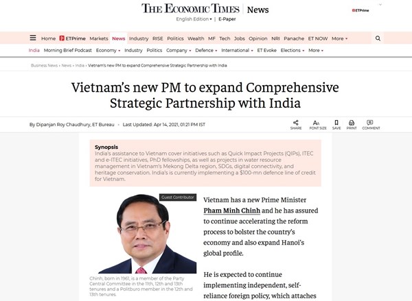 VOV1 - Tờ The Economic Times của Ấn Độ ngày 14/4 có bài viết đề cập triển vọng quan hệ Việt Nam - Ấn Độ trong những năm tới, trong bối cảnh Việt Nam vừa tổ chức...