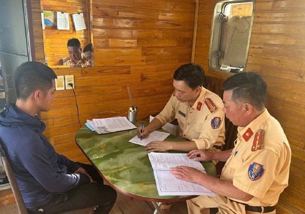 VOVVN - VOV.VN - Trong đợt tổng kiểm soát, xử lý phương tiện kinh doanh vận tải. lực lượng Cảnh sát giao thông Công an tỉnh Ninh Bình đã phát hiện một trường hợp thuyền trưởng sử...