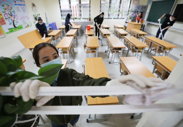 VOV1 - Chuẩn bị đón học sinh trở lại trường vào ngày 2/3 tới, từ ngày 27/02, nhiều trường học ở Hà Nội đã dọn vệ sinh trường, lớp học, chuẩn bị các trang thiết bị y...