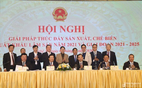 VOV5 - (VOV5) -Ngày 1/12, tại tỉnh Nghệ An,diễn ra hội nghị “Giải pháp thúc đẩy sản xuất, chế biến và xuất khẩu lâm sản năm 2021 và giai đoạn 2021-2025”.