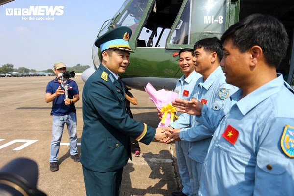 VOVVN - VOV.VN - Sau khi hoàn thành nhiệm vụ rẽ mây, kéo cờ Tổ quốc, thả nhiễu trên bầu trời TP.HCM sáng nay (30/4), các phi công trở về sân bay Biên Hòa với nụ cười...