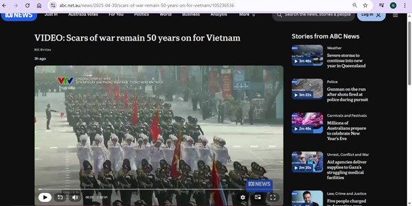 VOVVN - VOV.VN - Nhiều báo chí của Australia đã đưa tin về Lễ kỷ niệm 50 năm Giải phóng miền Nam, thống nhất đất nước diễn ra tại TP.HCM. Các báo đều miêu tả những hoạt...