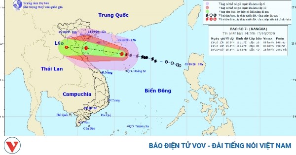 VOVVN - VOV.VN - Dự báo trong 24 giờ tới, bão số 7 di chuyển theo hướng Tây Tây Bắc, mỗi giờ đi được khoảng 20km.