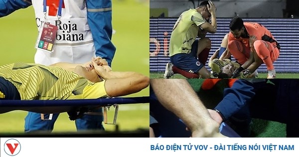 VOVVN - VOV.VN - Cổ chân của Santiago Arias bị biến dạng sau pha va chạm với Darwin Machis trong trận đấu giữa Colombia và Venezuela tại Vòng loại World Cup 2022 khu vực Nam Mỹ.