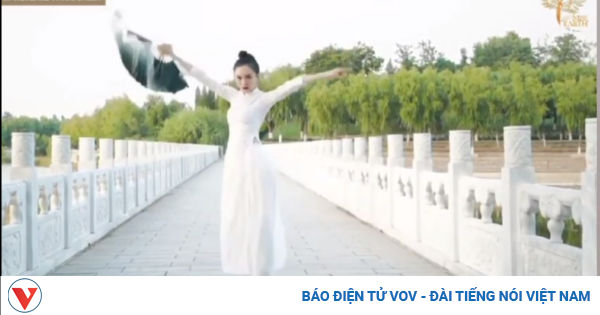 VOVVN - VOV.VN - Thí sinh Trung Quốc Jie Ding diện một bộ trang phục màu trắng, có nhiều chi tiết giống áo dài của phụ nữ Việt Nam trong phần thi tài năng tại Miss Earth...