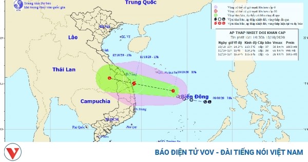 VOVVN - VOV.VN - Sức gió mạnh nhất vùng gần tâm áp thấp nhiệt đới mạnh cấp 7, giật cấp 9. Dự báo trong 12 giờ tới, áp thấp nhiệt đới có khả năng mạnh lên thành...