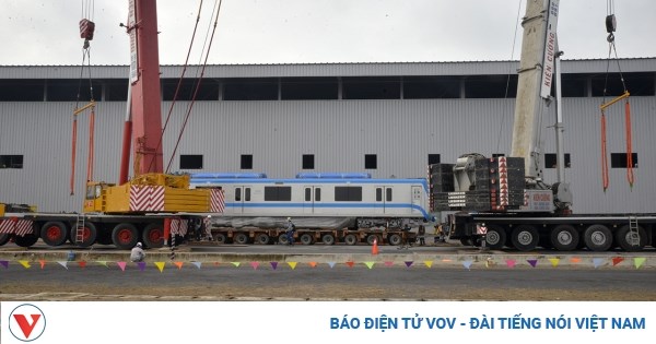 VOVVN - VOV.VN - Sáng 10/10, tại depot Long Bình (Quận 9, TPHCM), 3 toa tàu metro số 1 được lắp ráp lên đường ray.