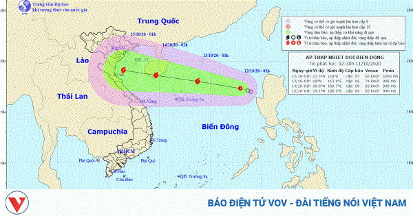 VOVVN - VOV.VN - Vị trí tâm áp thấp nhiệt đới cách quần đảo Hoàng Sa khoảng 630km về phía Đông Đông Bắc. Vùng nguy hiểm do áp thấp nhiệt đới sau mạnh lên thành bão trên...