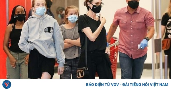 VOVVN - VOV.VN - Angelina Jolie mặc đồ màu đen đơn giản khi đi mua sắm cùng các con tại siêu thị ở...