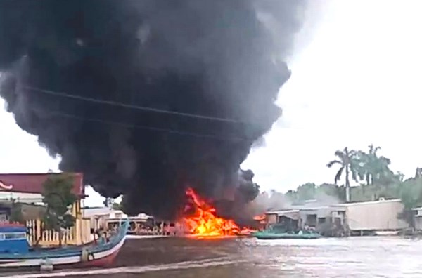 VOVVN - VOV.VN - Trưa 29/5, UBND xã Đất Mũi, huyện Ngọc Hiển, tỉnh Cà Mau xác nhận, trên địa bàn xã vừa xảy ra vụ cháy cơ sở kinh doanh xăng dầu.