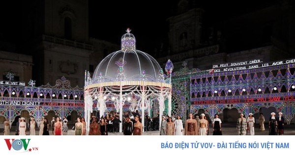 VOVVN - Các chi tiết hoa lúa mạch được đính trên các mẫu đầm dài, đầm Miss Dior biểu tượng được điểm xuyết với hoa thêu nổi… vô cùng hút mắt.