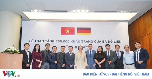 VOVVN - VOV.VN -Bà Đỗ Thị Kim Liên, Chủ tịch Quỹ Hỗ trợ Xây dựng Môi trường Xanh Việt Nam đã trao tặng 300.000 chiếc khẩu trang cho nhân dân nước CHLB Đức.