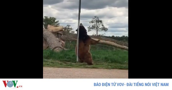 VOVVN - VOV.VN - Theo các nhà khoa học, màn múa cột hài hước này thực ra chỉ là một cách giúp chú gấu làm dịu đi cơn ngứa ở lưng do không thể với tay tới.