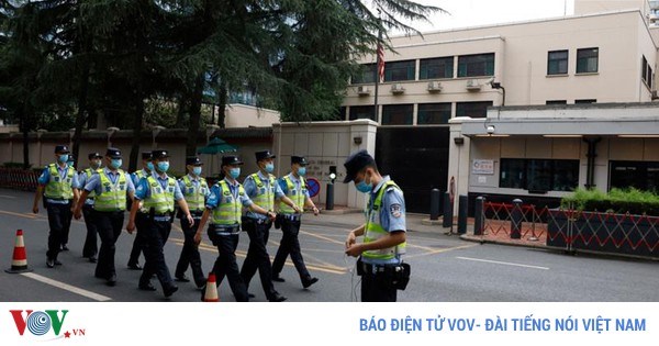 VOVVN - VOV.VN - Bên ngoài tòa Lãnh sự, cảnh sát được bố trí dày đặc, phong tỏa các con phố dẫn vào khu vực này.