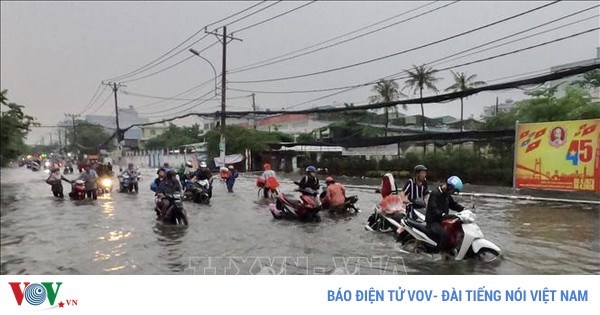 VOVVN - Chiều 14/6, nhiều tuyến đường trên địa bàn Thành phố Hồ Chí Minh tiếp tục chìm trong biển nước sau cơn mưa kéo dài hơn 4 tiếng đồng hồ.