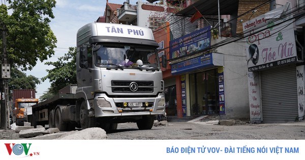 VOVVN - VOV.VN - QL17 qua phố Keo (xã Kim Sơn, huyện Gia Lâm) bị các xe lớn nhỏ cầy nát, tạo ra những ổ, hố lớn nguy hiểm cho người dân kể từ năm 2016 cho...