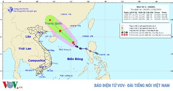 VOVVN - VOV.VN - Dự báo trong 24 giờ tới, bão số 1 di chuyển theo hướng Tây Bắc, mỗi giờ đi được 20-25 km và có khả năng mạnh thêm.