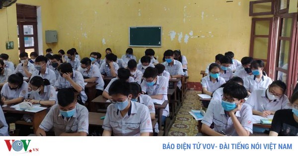 VOVVN - Trong ngày đầu quay lại trường, học sinh ở Thanh Hóa nghiêm túc thực hiện yêu cầu về y tế như đo thân nhiệt, rửa tay sát khuẩn trước khi vào lớp.