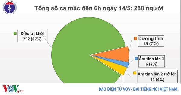 VOVVN - VOV.VN -Đến 6h sáng 14/5, Việt Nam không ghi nhận ca mắc Covid-19 mới. Hiện tổng số ca mắc vẫn là 288 ca.