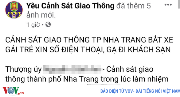 VOVVN - VOV.VN - Công an Khánh Hòa đang xác minh bài trên Facebook tố: “Cảnh sát giao thông thành phố Nha Trang bắt xe gái trẻ xin số điện thoại, gạ đi khách sạn".