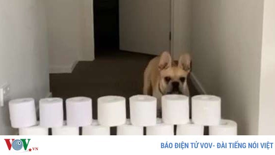 VOVVN - VOV.VN - Chú chó lần lượt nhảy qua các hàng giấy vệ sinh được xếp chồng lên nhau theo mức độ khó dần. Bạn nghĩ chú chó này sẽ chinh phục được mấy cấp độ?
