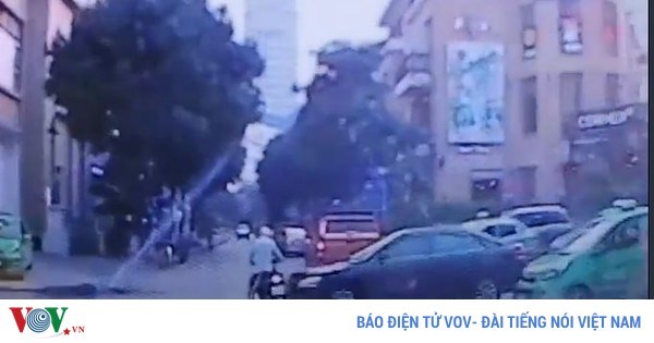VOVVN - Vụ tai nạn xảy ra ngày 26/3 ở Hà Nội. Chiếc ôtô đột ngột lao ra đường đâm trúng xe máy vừa đi đến khiến xe máy ngã xuống đường.