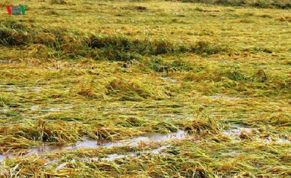 VOVVN - VOV.VN -Mưa lớn kéo dài từ chiều 24/4 đến 26/4, khiến hơn 16.000ha lúa Đông Xuân vào kỳ thu hoạch tại tỉnh Thừa Thiên Huế bị gãy đổ và ngập trong nước.