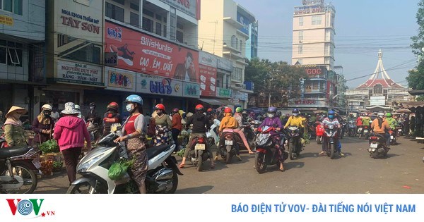 VOVVN - VOV.VN - Dòng người và phương tiện lưu thông trên những tuyến phố chính của phố núi Pleiku, Gia Lai đang có xu hướng đông đúc trở lại.