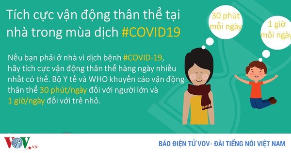 VOVVN - VOV.VN - Bộ Y tế và WHO khuyến cáo, thực hiện vận động khi ở nhà trong mùa dịch Covid-19 để duy trì cả thể chất và tinh thần.